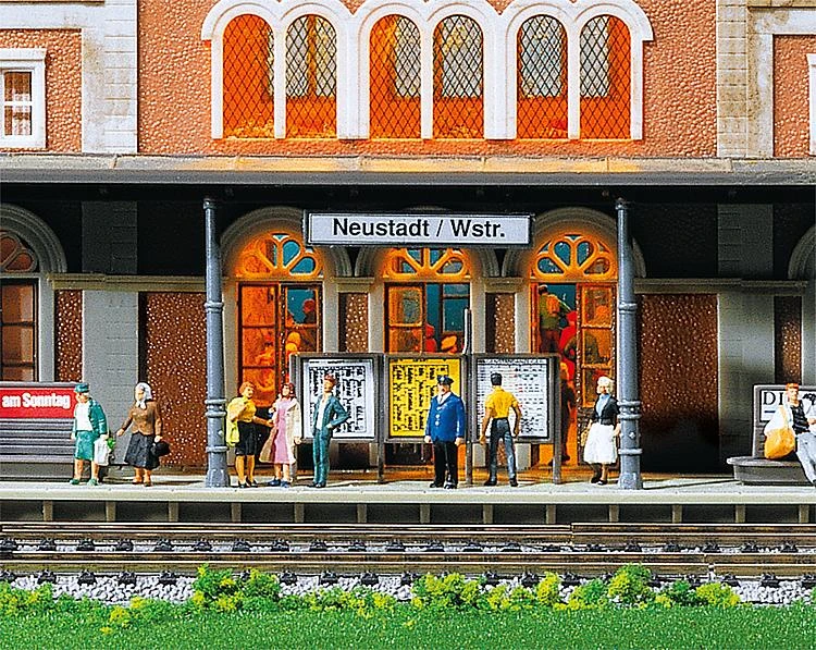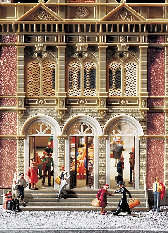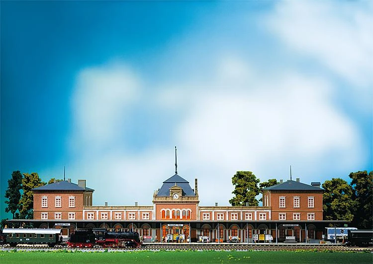 This is a Faller Gmbh 111 HO Scale Weinstasse Railway Station 31-11/16 x 11 x 10-3/4 79.2 x 27.5 x 26.8cm. This impressive station still serves the city of Neustadt. It’s loaded with a variety of interior and exterior details, and the windows make it a perfect candidate for lighting.