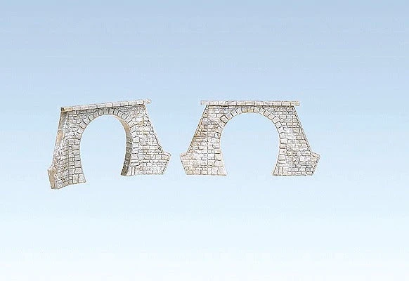 This is a Faller 120561 HO 2 Tunnel Portals. Features: Singel-track, for steam version. Especially suitable for the completion of the inner walls of tunnel are FALLER wall panels (170624, 170886). Dimensions: 157 x 85 x 8 mm, Clearance width: 51 mm, Clearance: max. 72 mm.