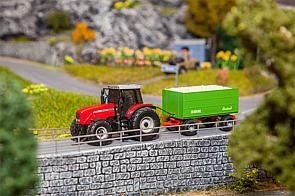 This is Faller 161588 HO MF Tractor with wood chips trailer. This is motorized and works with the Faller Car System. Check photo for a detailed look at this item.