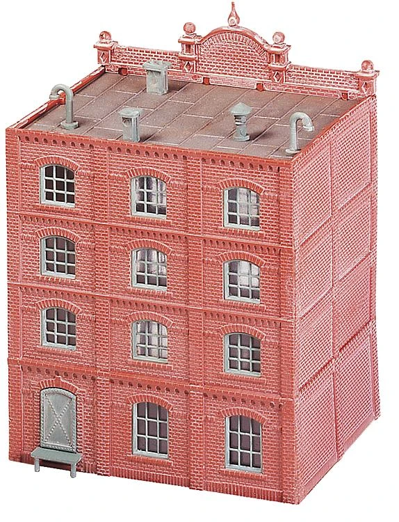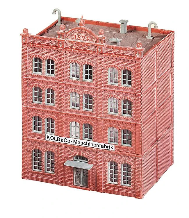 This is Faller 222201 Factory Kolb & Co. Kolb & Co. machine factory. Highly detailed brickwork accents this typical factory building. Combine several kits to extend the building in height and/or length.
